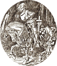 inventive White Knight makes his move -`I see you're admiring my little box.' the Knight said in a friendly tone. `It's my own invention -- to keep clothes and sandwiches in. You see I carry it upside-down, so that the rain can't get in.' -`But the things can get out,' Alice gently remarked. `Do you know the lid's open?' -`I didn't know it,' the Knight said, a shade of vexation passing over his face. `Then all the things much have fallen out! And the box is no use without them.' He unfastened it as he spoke, and was just going to throw it into the bushes, when a sudden though seemed to strike him, and he hung it carefully on a tree. `Can you guess why I did that?' he said to Alice. -Alice shook her head. -`In hopes some bees may make a nest in it -- then I should get the honey.' -`But you've got a bee-hive -- or something like one -- fastened to the saddle,' said Alice. -`Yes, it's a very good bee-hive,' the Knight said in a discontented tone, `one of the best kind. But not a single bee has come near it yet. And the other thing is a mouse-trap. I suppose the mice keep the bees out -- or the bees keep the mice out, I don't know which.' |